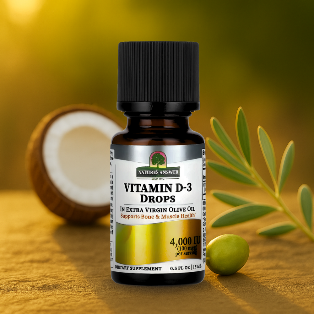 Witamina D3 w kroplach to czysta, płynna forma witaminy rozpuszczona w oliwie z oliwek extra virgin – bez wypełniaczy, bez konserwantów, bez zbędnych dodatków. W każdej porcji (2 krople) otrzymujesz aż 4000 IU witaminy D3.